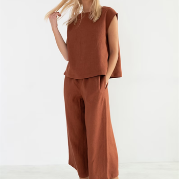 Top de manga corta de lino 100% para bebés y niños pequeños de verano personalizable con traje pantalón bombachos