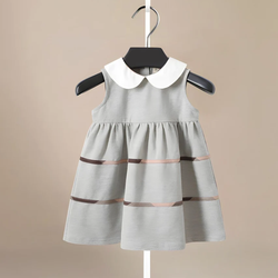 Versión personalizable 100% algodón Niña niño lindo vestido Peter Pan Collar vestido sin mangas