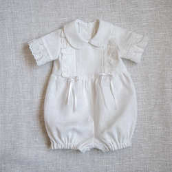 Mono personalizable de lino 100% para bebé, mono de solapa de manga corta con puño de encaje