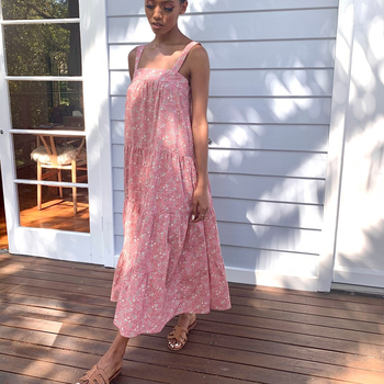Abito da donna in cotone organico personalizzabile abito Extra lungo senza maniche rosa Crepe